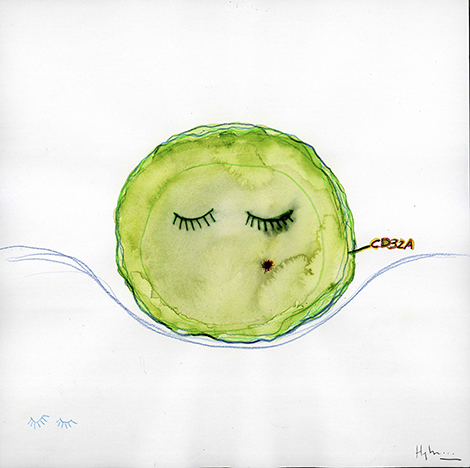 Attempt to describe the discovery of CD32A as a marker of VIH1 reservoir cells, by Hyber.
