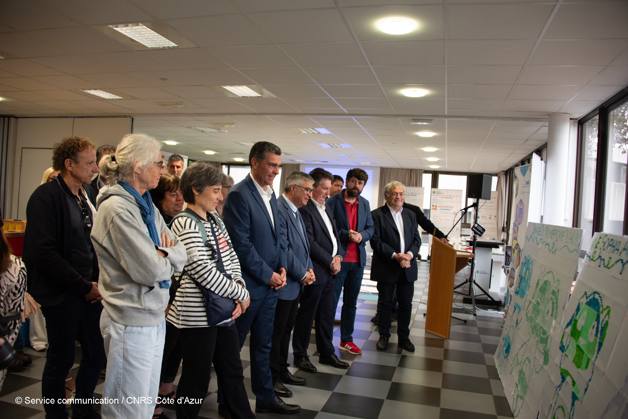 Marc Dalloz, Vice Président UniCA, représentant Jeanick Brisswalter - Dorian Mazauric, Responsable de Terra Numerica - Frédéric Mallet, Directeur du laboratoire I3S, représentant Sylvain Di Giorgio, délégué régional CNRS Côte d'Azur et Maureen Clerc, directrice d'Inria Côte d'Azur - Marc Neiss, Conseiller de la Rectrice - Joseph Cesaro, Maire de Valbonne Sophia Antipolis - Gérald Lombardo, conseiller départemental représentant M. le Président du Conseil Départemental des Alpes Maritimes - Serge Amar, Vice-Président de la région PACA, représentant M. le Président de la Région Provence Alpes Côte d'Azur - Eric Pauget, Député des Alpes Maritimes.