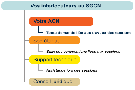 L'équipe du SGCN accompagne le Comitè national. Chaque Section et CID peut s'appuyer sur l'expertise d'un assistant et ou d'une assistante du Comité national qui vous accompagne tout au long du mandat et vous assistera lors de toutes les sessions du mandat. Vous bénéficierez également de l'assistance du support technique et d'un conseil juridique si nécessaire.