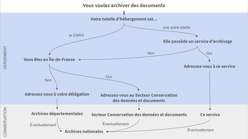 - 1Since 2016, the SC2D (Data and Documents Preservation Unit) has been under the hierarchical authority of the 'Heritage and Logistics' Unit of the Ile-de-France Shared Service (IFSeM). IFSeM in turn is part of the CNRS Ile-de-France Villejuif regional office. In functional terms, the SC2D is linked to the CNRS Legal Affairs Department's own National Data and Document Preservation Unit.