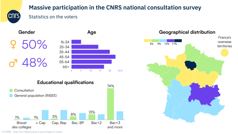 "The CNRS has reinforced its capacity to listen to society with this initiative, which is rare in the scientific world," explains Antoine Petit, the Chairman and CEO of the CNRS referring to the national consultation run from November 28th 2024 to January 31st 2025 in partnership with the Make.org citizen engagement platform. The survey was based on a single question - "How can science help us construct the world of tomorrow?"