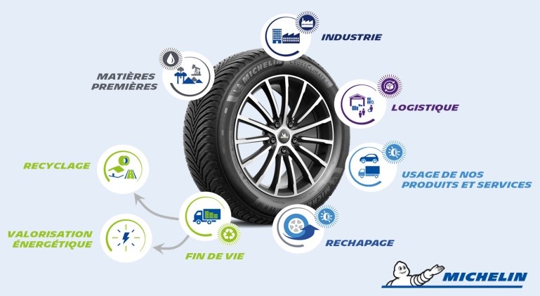 Concrètement, le raisonnement s’applique à l’ensemble du cycle de vie du pneumatique. En amont, le choix des matières premières privilégie le biosourcing et on travaille davantage sur des leviers de circularité, comme l’intégration de matières recyclées, une conception compatible avec de nouvelles filières de recyclage, et une réduction de certaines dépendances matières. Les procédés industriels s’orientent vers la sobriété énergétique et la réduction des émissions, tandis que la logistique cherche à transporter moins et mieux.