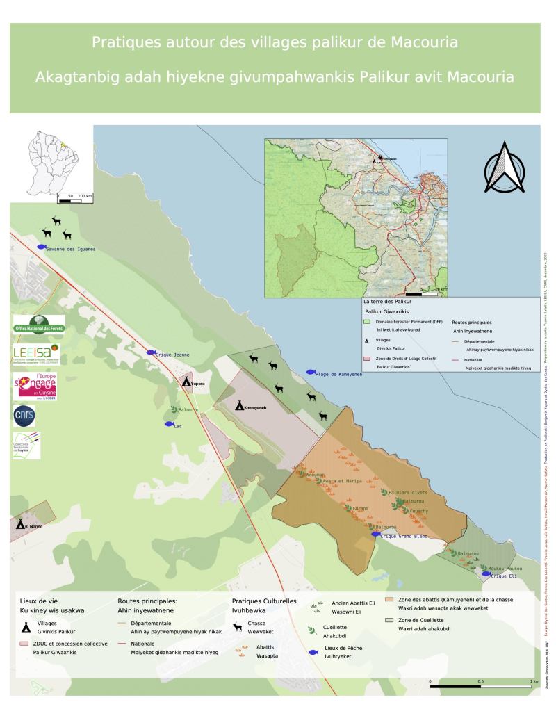 Quatre animateurs palikur ont été formés et rémunérés pour utiliser des logiciels de cartographie et des outils GPS et animer des ateliers de concertation. Ils ont été encadrés par une chargée de mission du CNRS, garante de la méthode scientifique, et un assistant technique de l’ONF. Cette cartographie participative fait partie du projet "Palikur Giwaxrikis" ("La terre des Palikur"), financé par le Fonds européen de développement régional (Feder) et réalisé en 2022. Le but était de formaliser une procédure de concertation pour favoriser le dialogue et le partage de connaissances afin d’aboutir à une gestion durable des espaces forestiers. Une charte d’engagement a été écrite par l’ONF à l’issue de ces concertations. Cela a aussi permis de faire remonter des besoins précis, par exemple l’installation de panneaux d’information sur les règles à respecter dans les territoires où les communautés amérindiennes disposent d’un droit d’usufruit.
