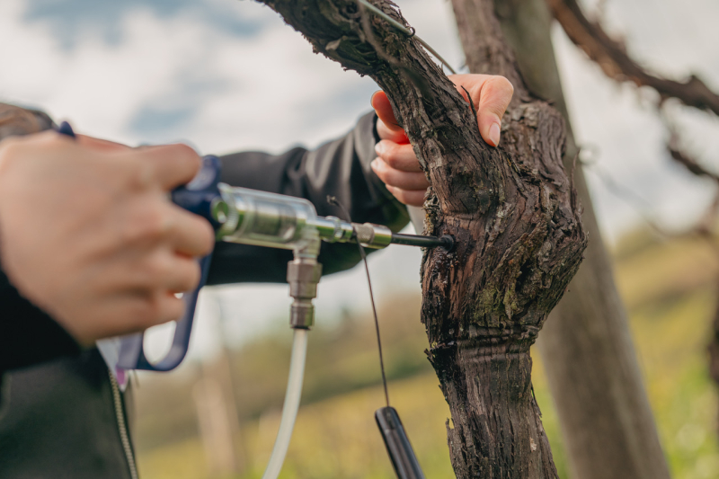 Concrètement, l’équipe de chercheurs a fait le constat que nombre de bactéries, dont les champignons, pénètrent dans la plante lors de sa taille et créent ainsi des nécroses du bois. « En lutte préventive, nous avons affiné les protocoles et mis au point des méthodes de taille plus respectueuses des ceps », explique Patrice Rey. Avant d’ajouter : « notre innovation, dans la lutte curative, repose sur le biocontrôle : introduire dans le bois des bactéries bénéfiques capables de rivaliser avec les champignons pathogènes. Nous soignons la vigne en restaurant son écosystème interne », détaille le scientifique. Soigner le vivant par le vivant, voilà la solution.