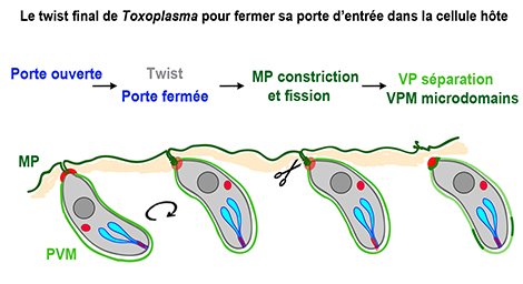 Cette étude pionnière dans son domaine lève le voile sur une des étapes de l'invasion qui constituerait probablement l'un des premiers « signaux » pour Toxoplasma gondii, lui indiquant qu'il peut engager la phase intracellulaire de son cycle. L'équipe cherche maintenant à comprendre en détail les propriétés mécaniques de cette porte qui ouvre et ferme les membranes des cellules.